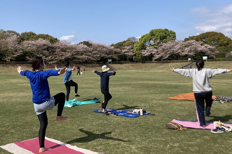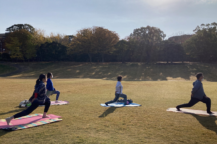 広くて青い空の下、柔らかい芝生の上でカラダを動かすのが、とーーっても気持ちいいんです。不定期開催ですが、どなたでも参加いただけるカジュアルなレッスンです。私のお気に入りの場所、静岡県立大学の芝生広場での開催です。